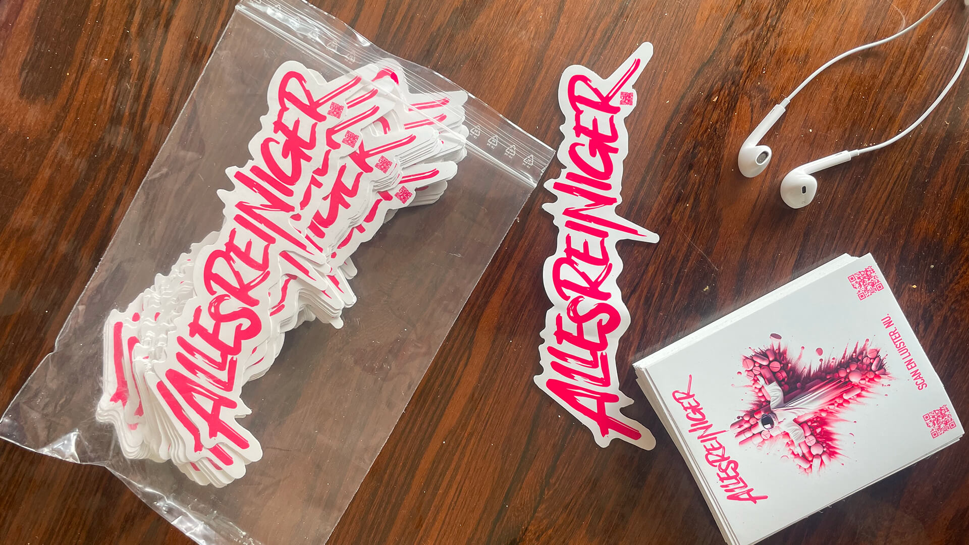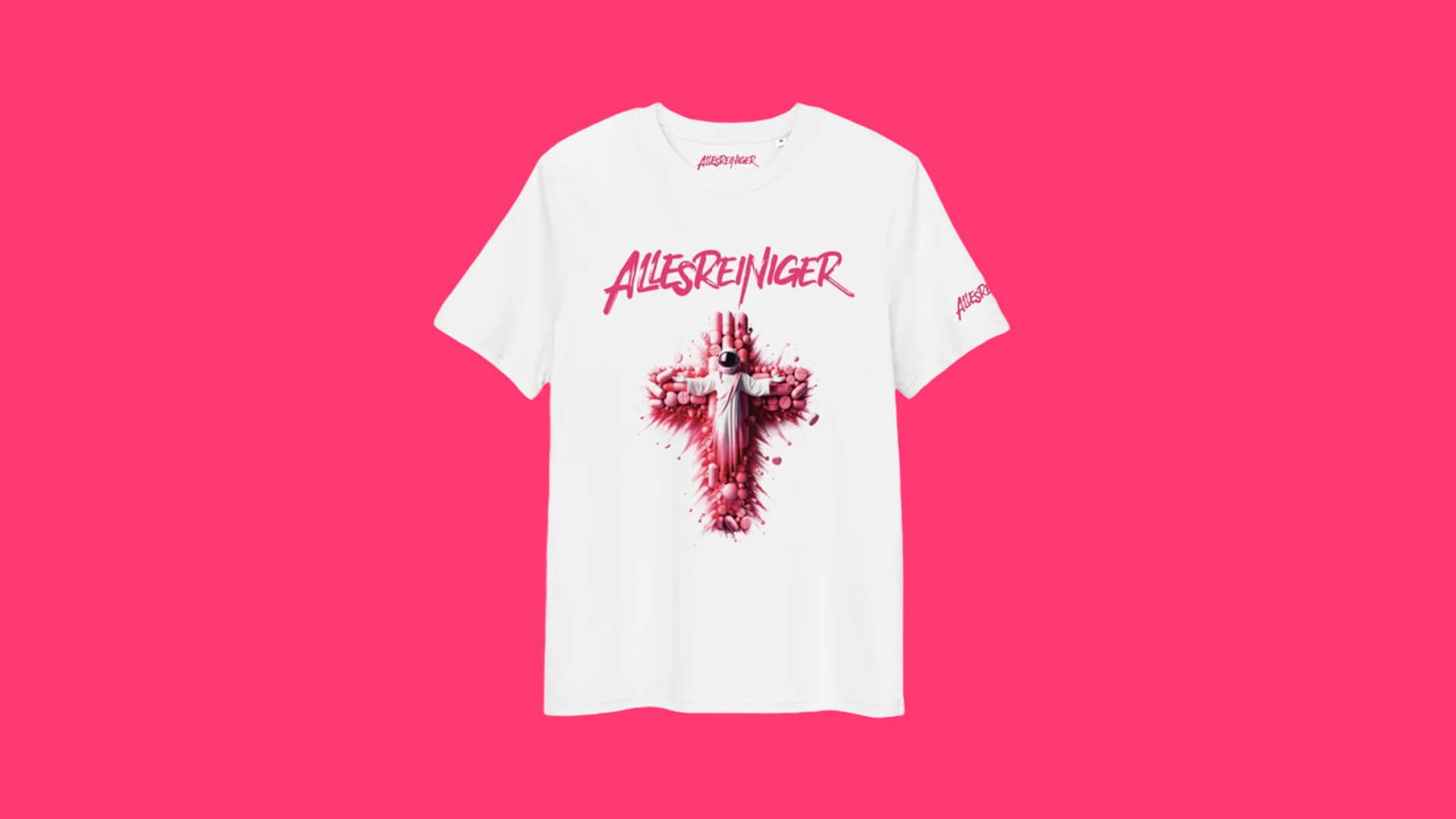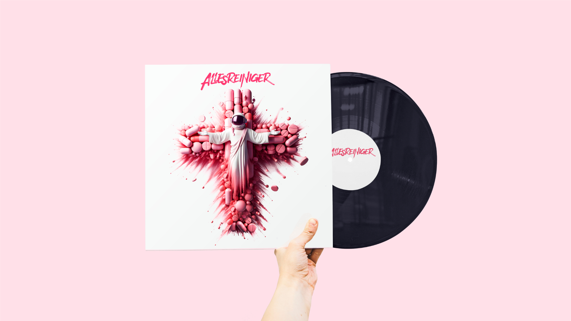 Design and branding for the Dark Electro Preacher of the Netherlands: Allesreiniger. We've created everything from the logo, website, merch, EP and even stickers.