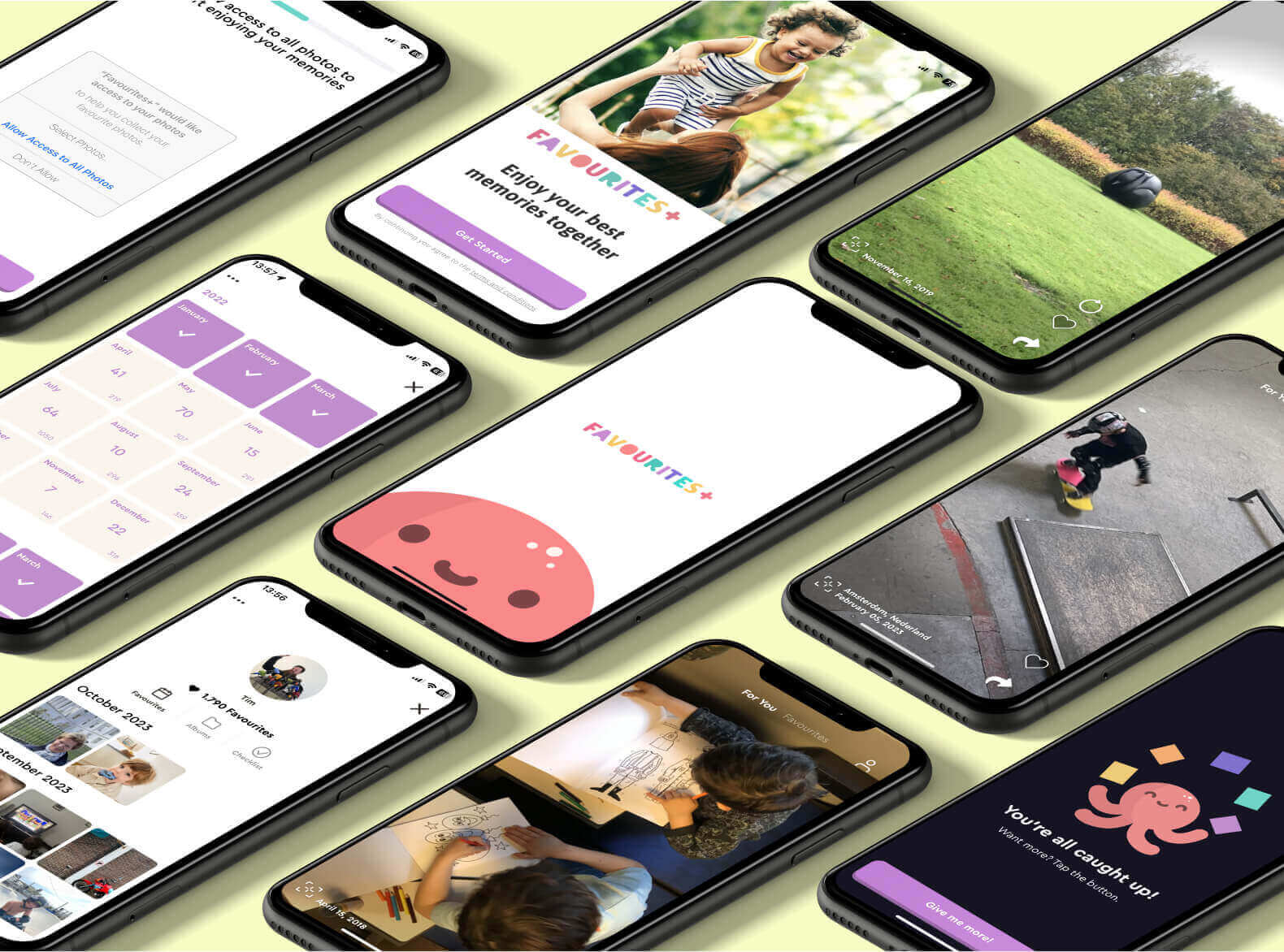 Branding and mascot for the Favourites+ app. Favourites+ was an app to help you curate your camera roll into a meaningful collection.